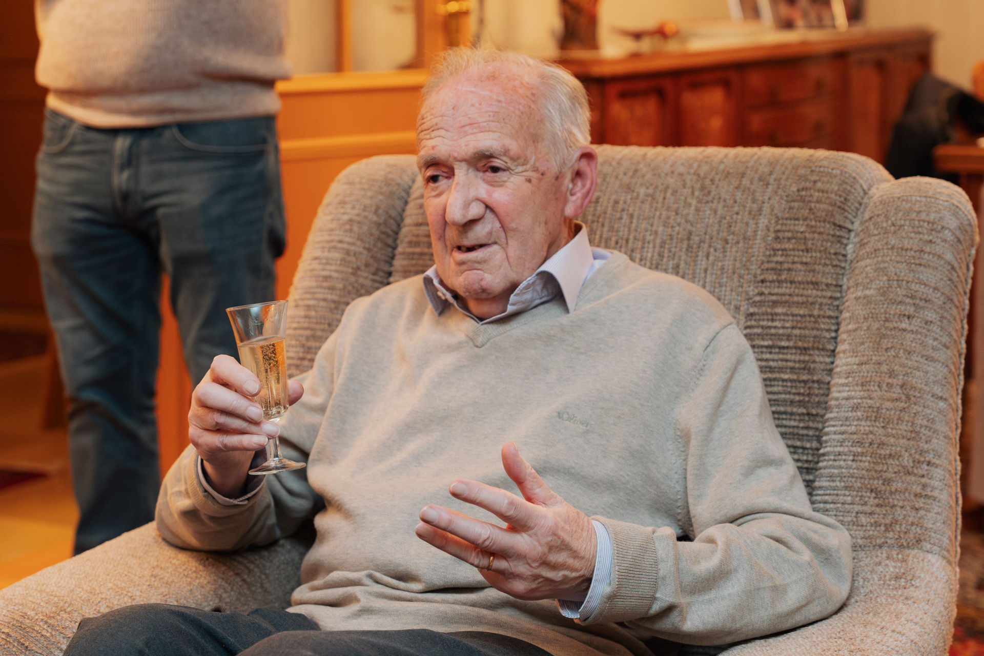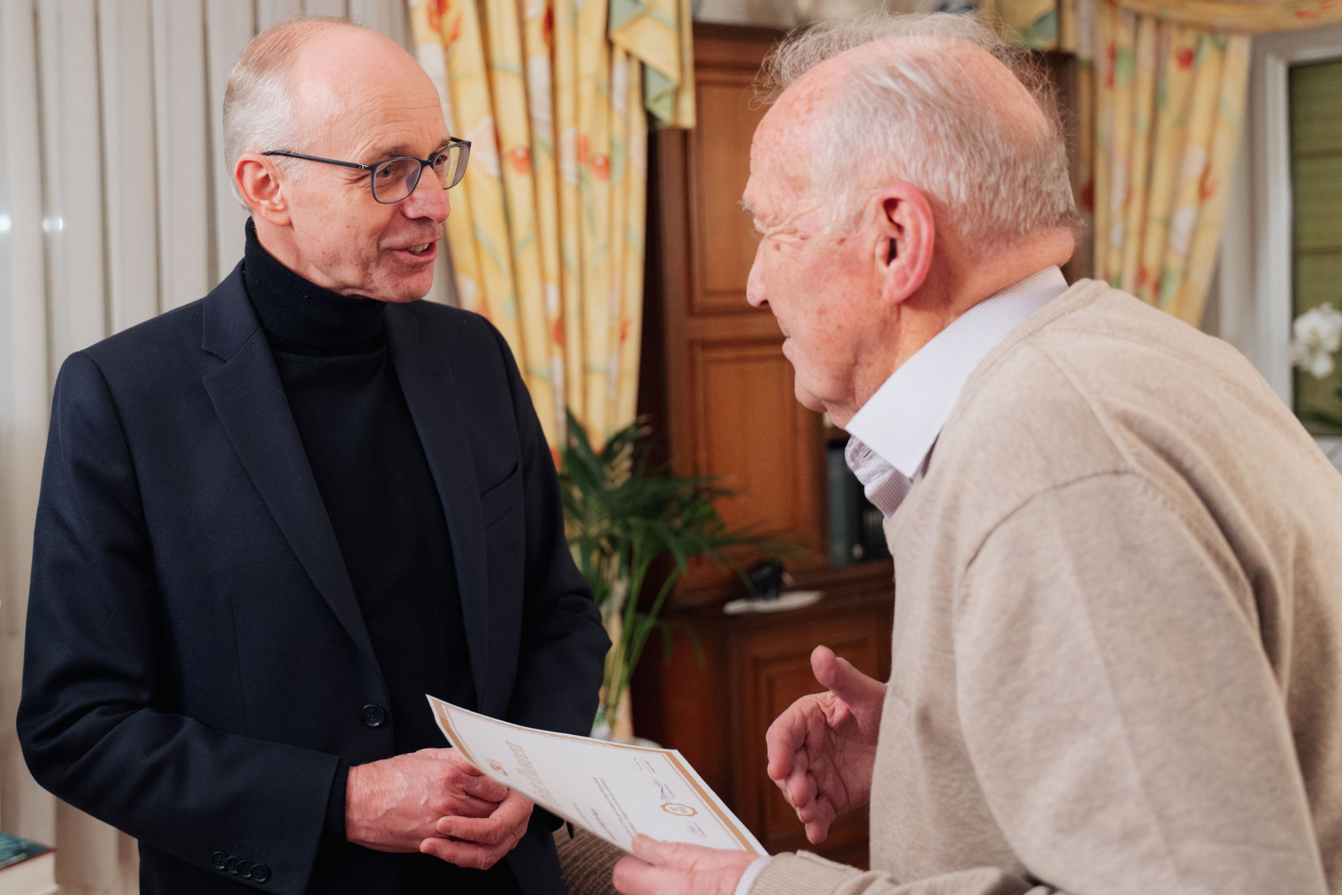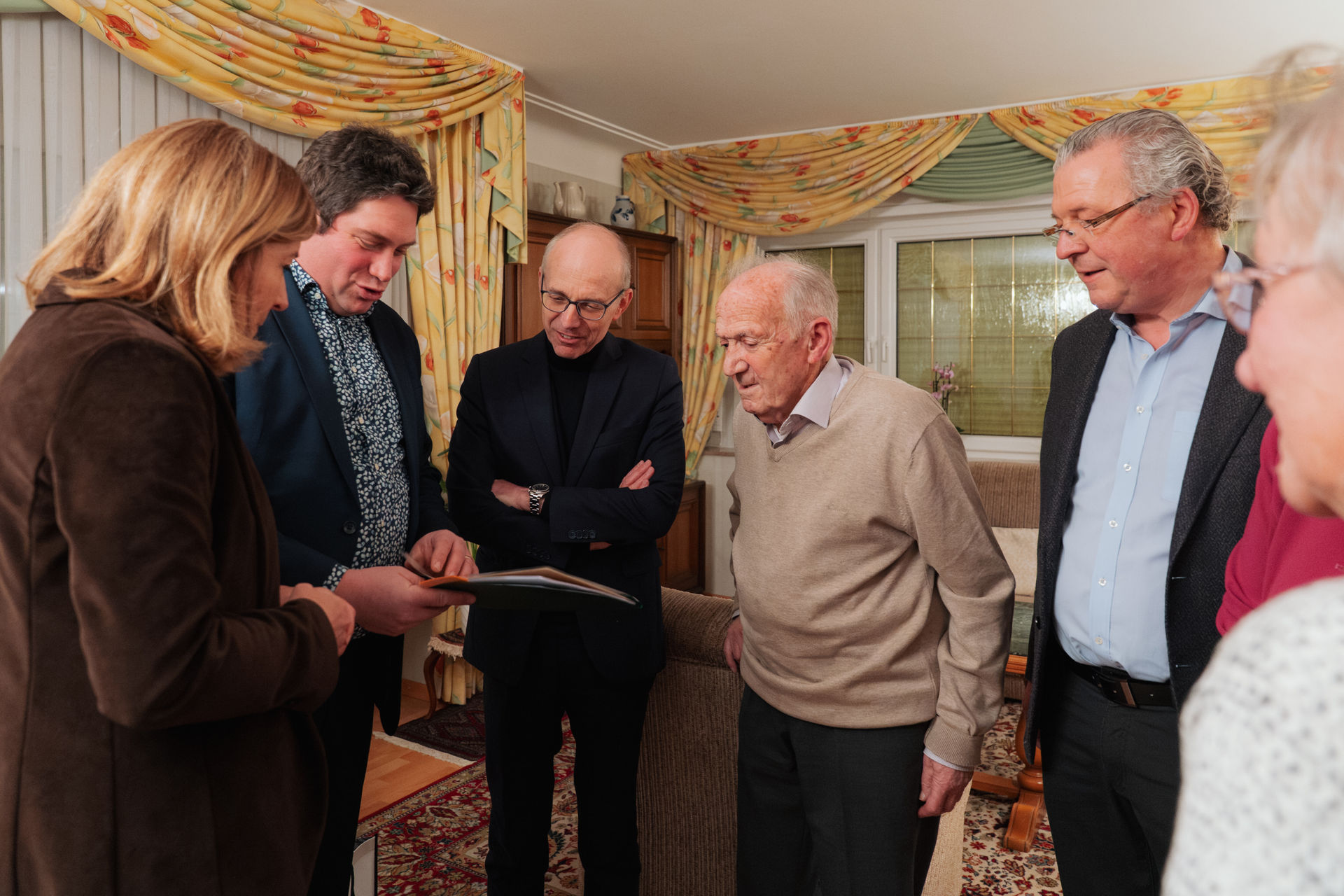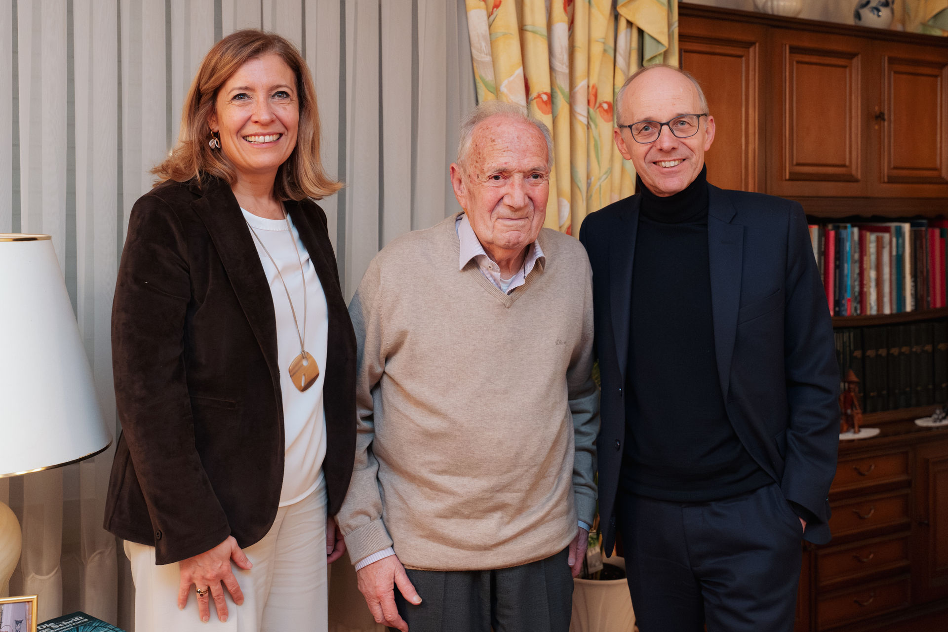 Eise Parteipresident Luc Frieden, d’Hesper Buergermeeschtesch Diane Adehm an de Sektiounspresident Guy Wester haten déi grouss Éier, dem Roger vun der Hesper Sektioun fir seng 80 Joer Memberschaft bei eis ze felicitéieren.